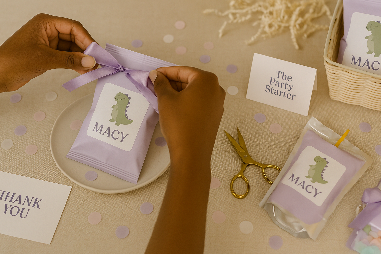 Curated bundles that include multiple matching favor types chips, drinks, candy, and...